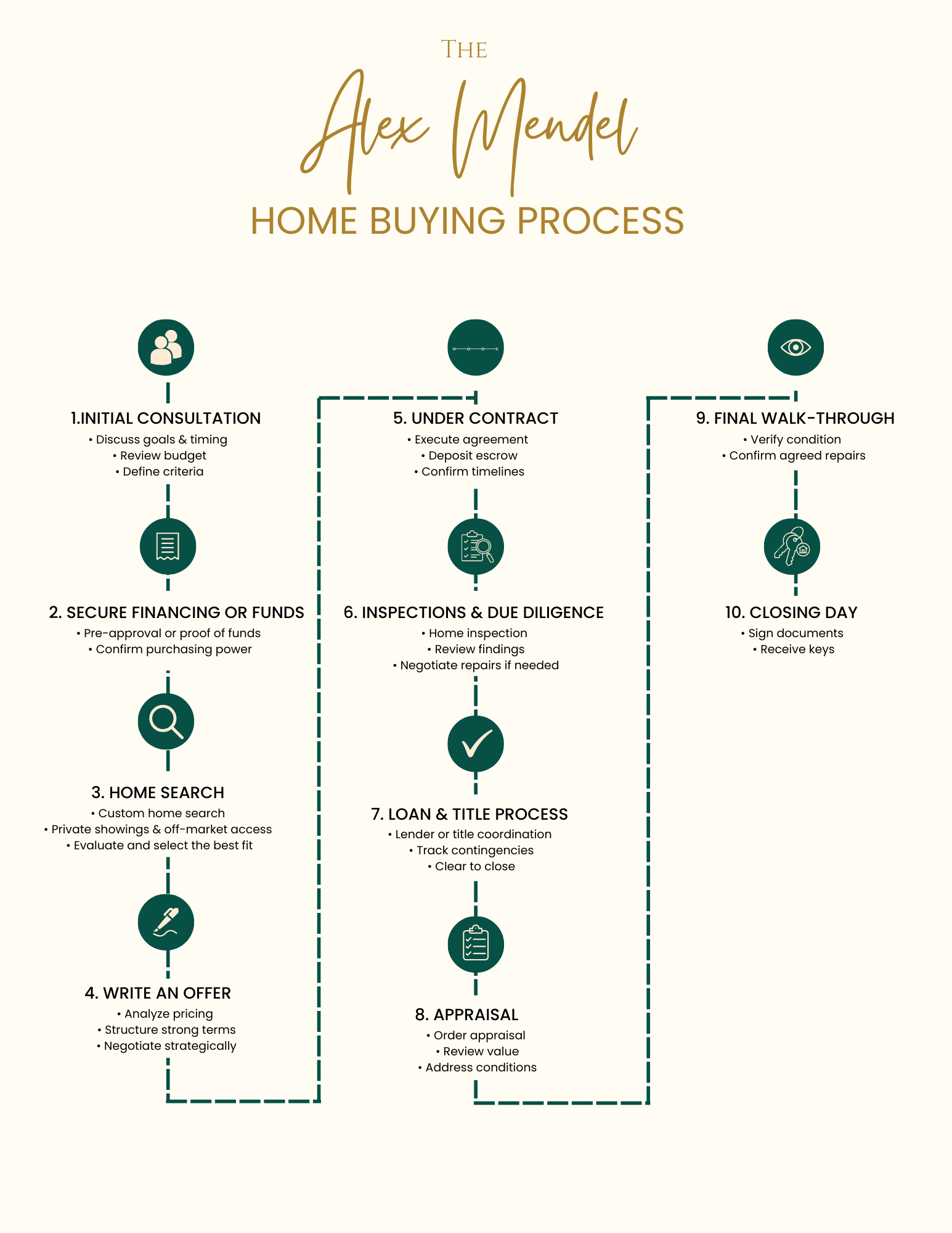 You can expect a structured and guided experience from start to finish. We begin by understanding your goals, timeline, and criteria so we can create a clear plan before touring a home. If there are unique financial or documentation requirements, we address those upfront so everything is properly structured from the beginning.